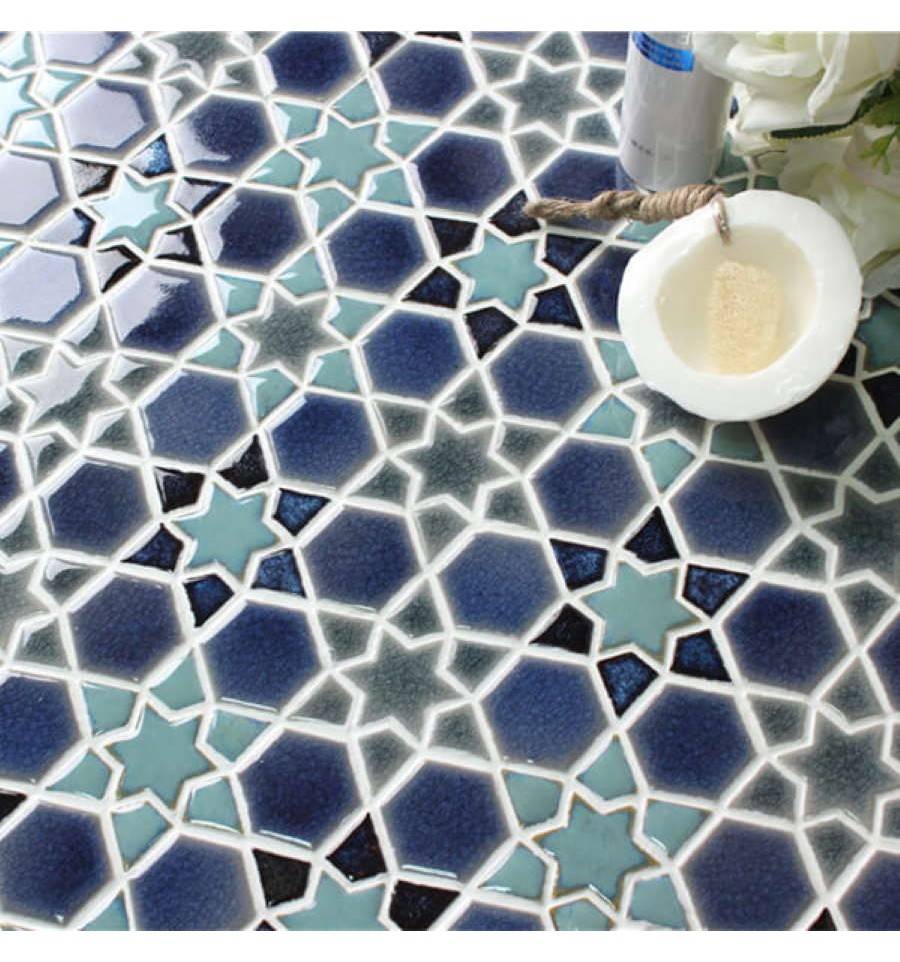 Мозаика из керамики, поверхность глазурованная глянцевая.
