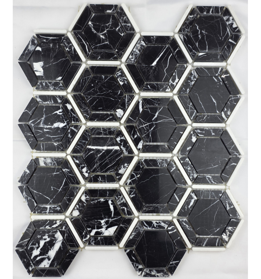 Новинка "Философия Мозаики" Hexagon Nero мраморная мозаика Увеличить