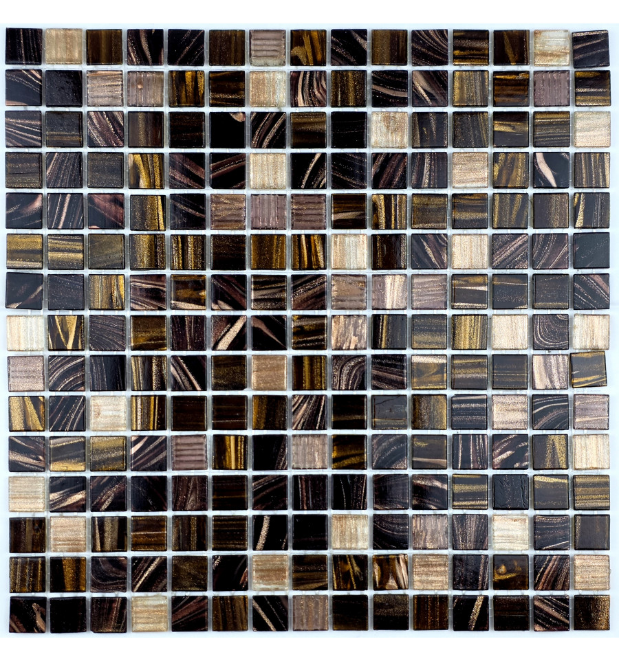 Смальтированная стеклянная мозаика с авантюрином, поверхность глянцевая. Размер чипа 20*20 мм.