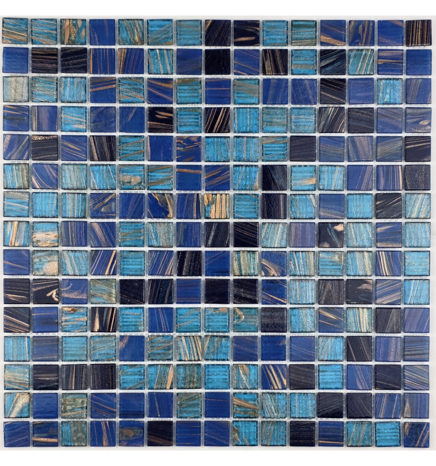 Смальтированная стеклянная мозаика с авантюрином, поверхность глянцевая. Размер чипа 20*20 мм.