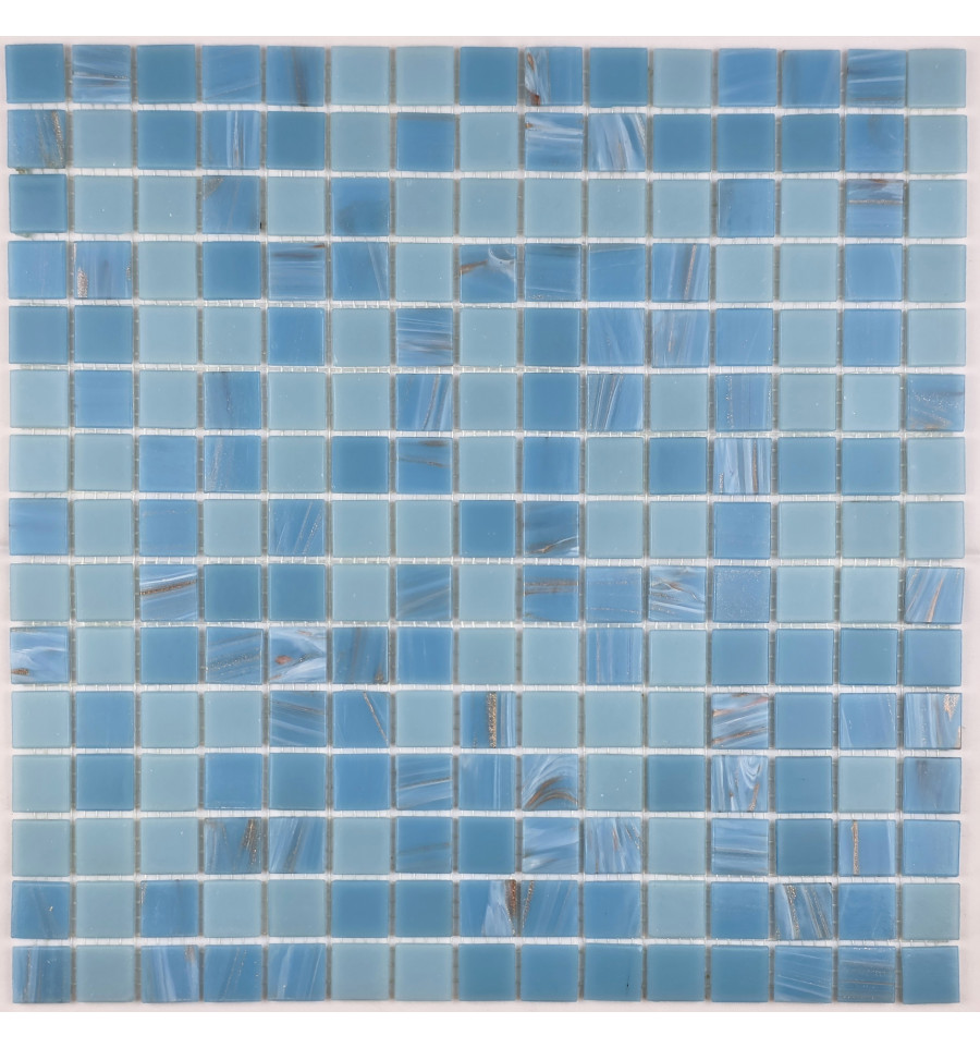 Смальтированная стеклянная мозаика с добавлением авантюрина, поверхность глянцевая. Размер чипа 20*20 мм.