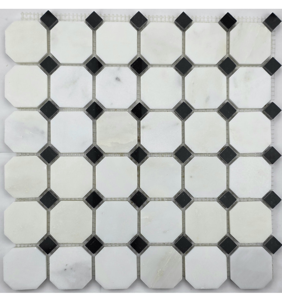 Мозаика из натурального камня в форме октагона, поверхность полированная.
