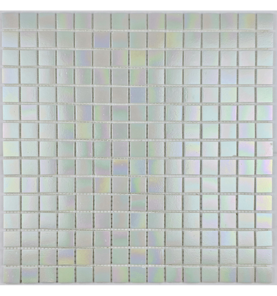 Смальтированная стеклянная мозаика с перламутром на сетке, поверхность глянцевая. Размер чипа 20*20 мм.