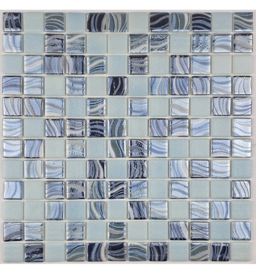 Испанская стеклянная мозаика с верхним напылением цвета, поверхность глянцевая, перламутровая. Подходит как для оформления интерьеров, так и для облицовки бассейнов и влажных зон.