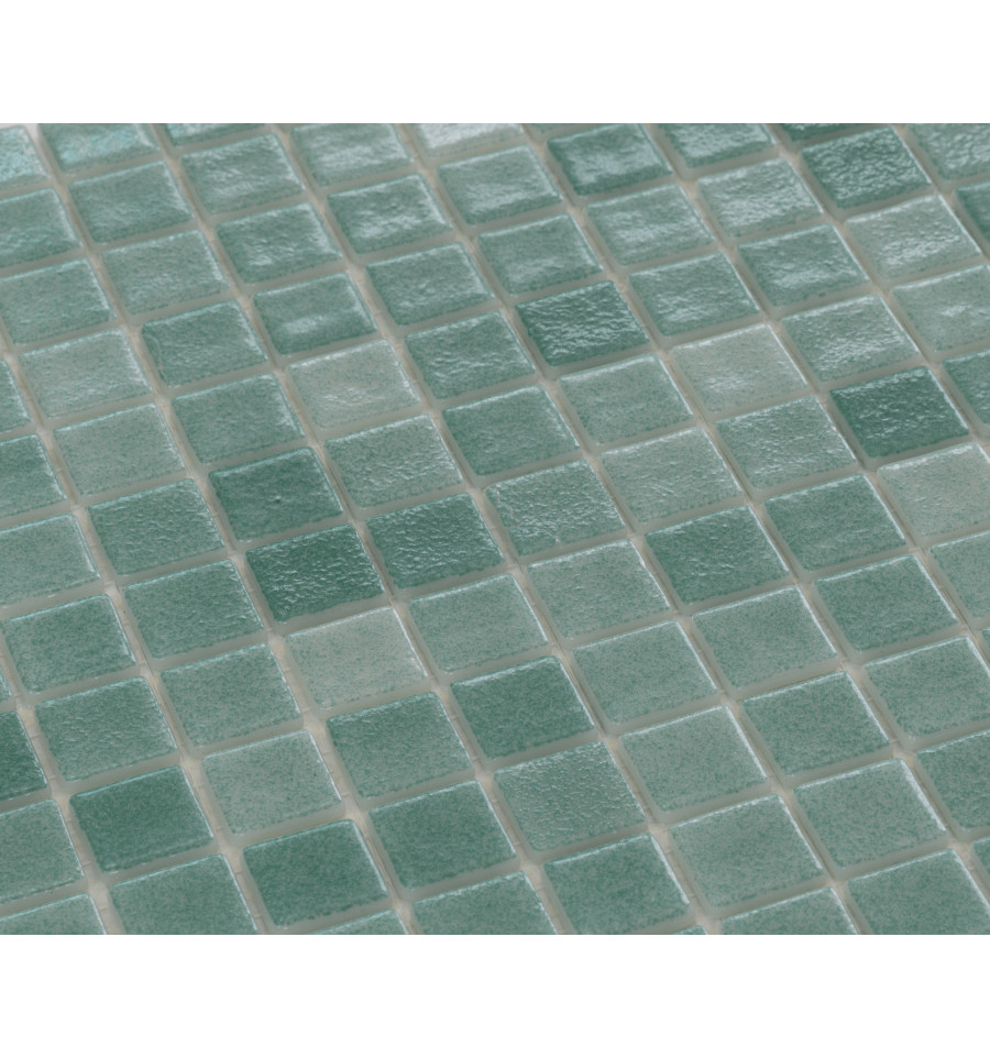 Испанская стеклянная мозаика с верхним напылением цвета, поверхность противоскользящая (antislip). Подходит для облицовки бассейнов и влажных зон.