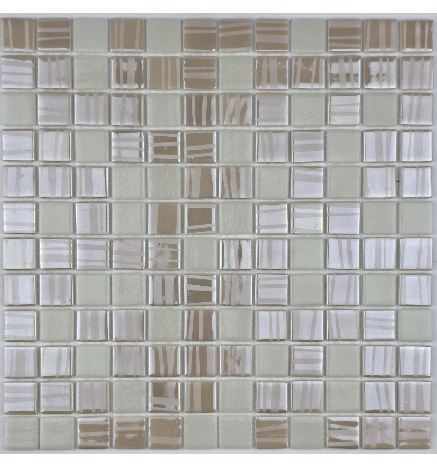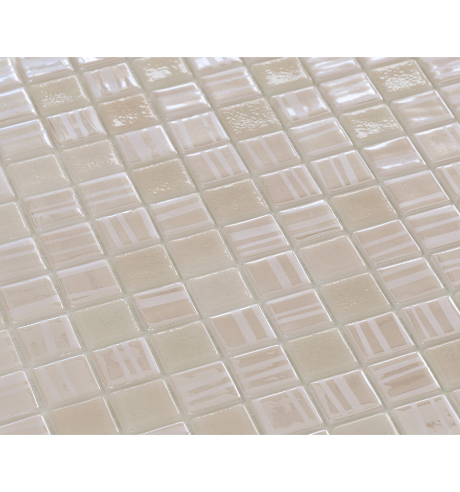 Испанская стеклянная мозаика с верхним напылением цвета, поверхность глянцевая, перламутровая. Подходит как для оформления интерьеров, так и для облицовки бассейнов и влажных зон.