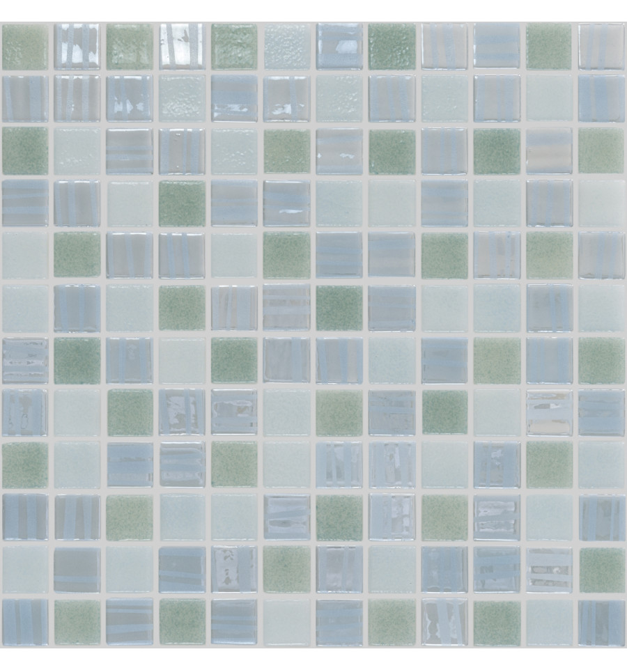 Испанская стеклянная мозаика с верхним напылением цвета, поверхность глянцевая, перламутровая. Подходит как для оформления интерьеров, так и для облицовки бассейнов и влажных зон.