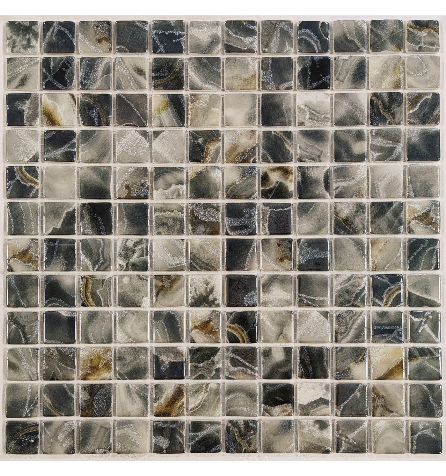 Испанская стеклянная мозаика с глянцевой поверхностью под натуральный мрамор (камень). Подходит как для оформления интерьеров, так и для облицовки бассейнов и влажных зон.
