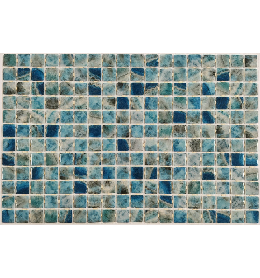 Испанская стеклянная мозаика на сцепке с глянцевой поверхностью под натуральный мрамор (камень). Подходит как для оформления интерьеров, так и для облицовки бассейнов и влажных зон.