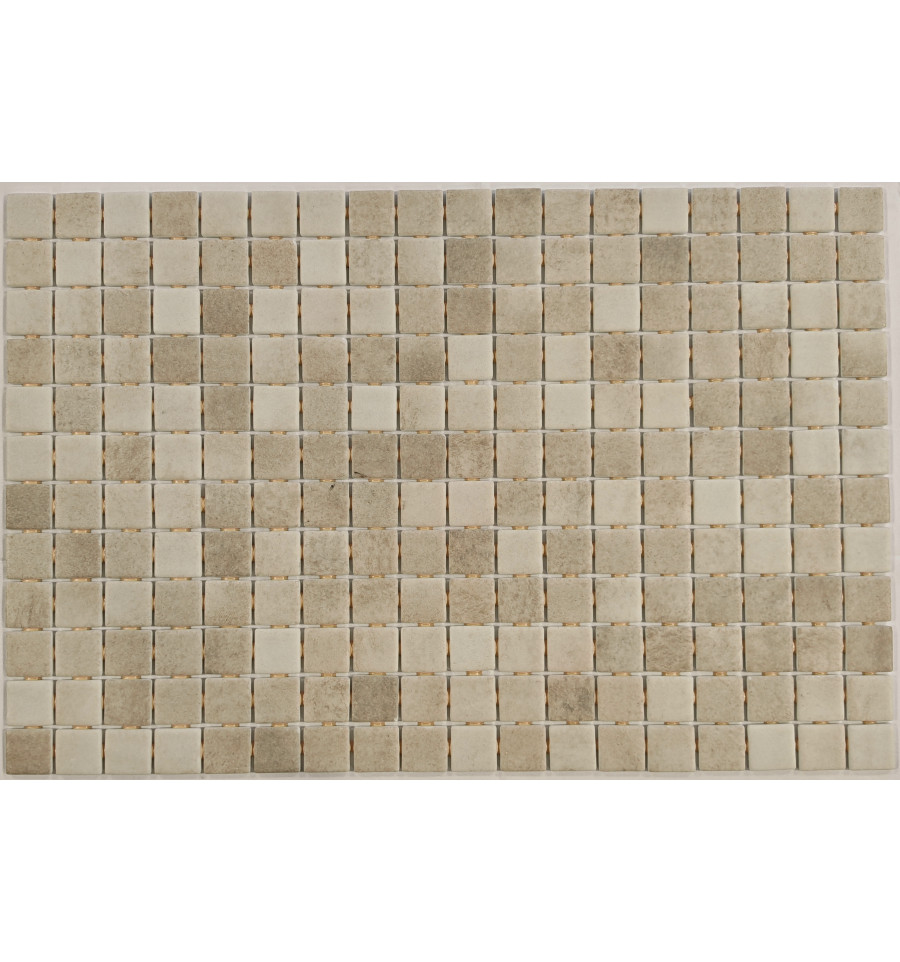 Испанская стеклянная мозаика на сцепке с матовой поверхностью под натуральный травертин. Подходит как для оформления интерьеров, так и для облицовки бассейнов и влажных зон.